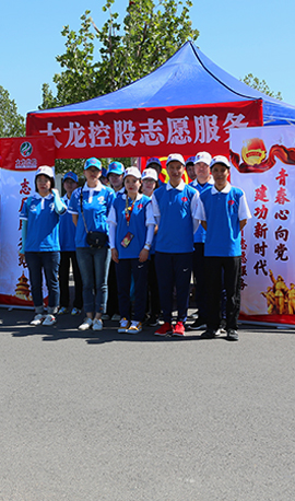 为弘扬“奉献、友爱、互助、进步”的志愿服务精神,主动担当国企社会责任,公司团组织积极围绕区中心工作, 利用团组织优势,开展“青春心向党 建功新时代”为主题的志愿服务活动。大龙控股志愿服务队不仅服务社区、街道及学校等各类志愿服务,还积极参与国家级、地区重要活动、赛事、庆典,将志愿服务不断纵向延伸。自5月28日—6月1日,来自公司各岗位的近50余名青年干部为京交会成功举办保驾护航。